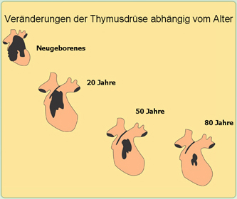 Mit zunehmendem Alter schrumpft die Thymusdrüse und damit nimmt die von den